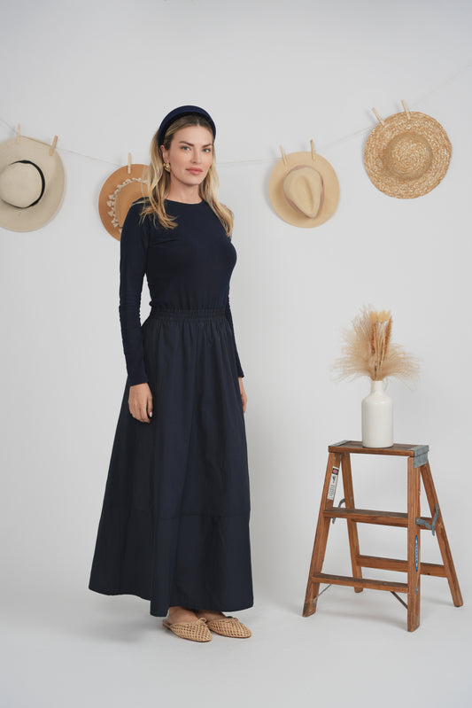 EUX Navy Paperbag Maxi Skirt SB6CM2088SL
