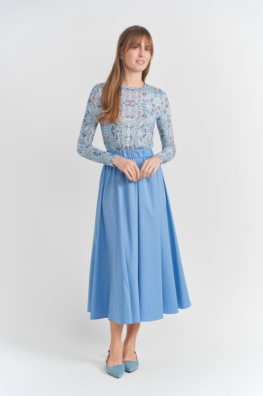 English Light Blue Printed Floral Chiffon Maxi Skirt TS6119S-A